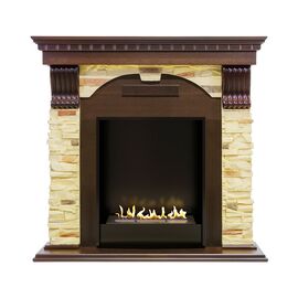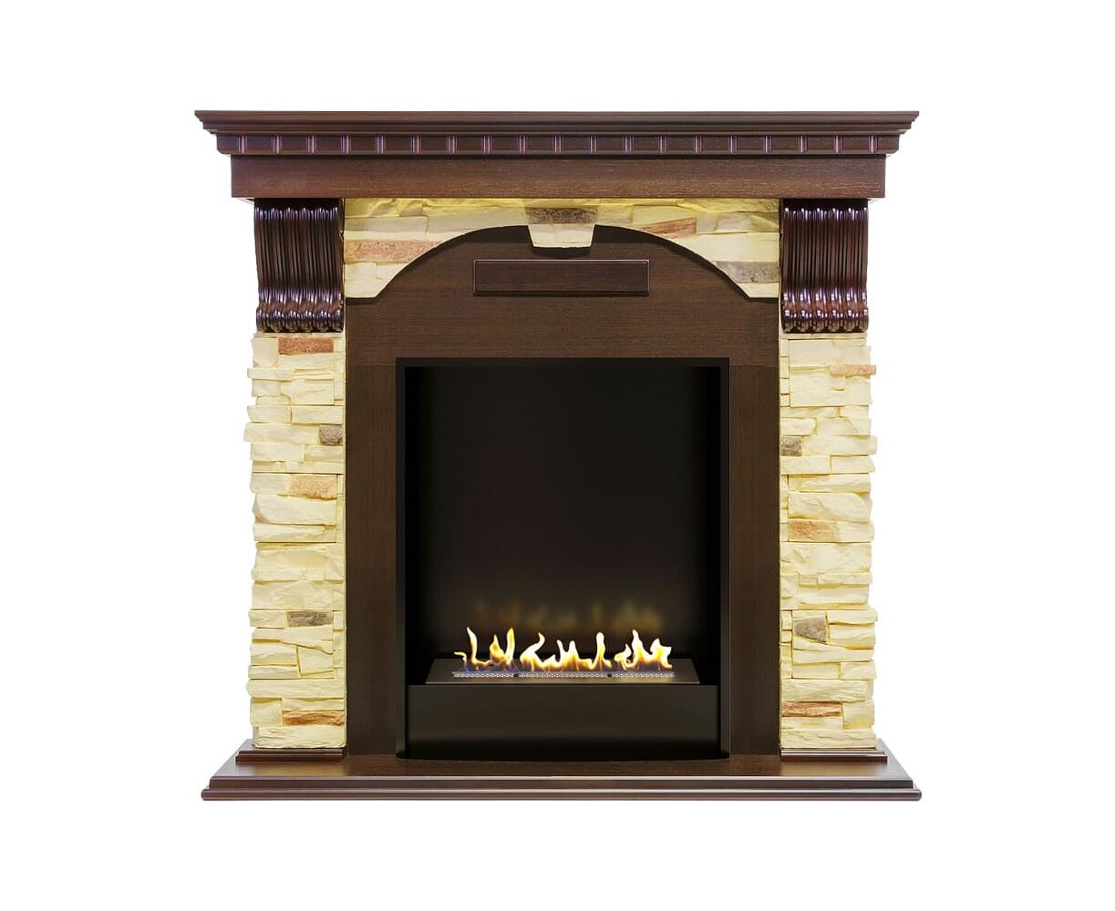 Портал Dublin выполнен в классическом стиле с античными элементами. Боковые колонны из светлого камня, стилизованного под натуральную сланцевую породу, дополнены резными узорами контрастного цвета. Столешница и постамент выполнены из дерева. Такое сочетание материалов подчеркивает изысканность портала и делает его выгодным приобретением для практических любых интерьеров.