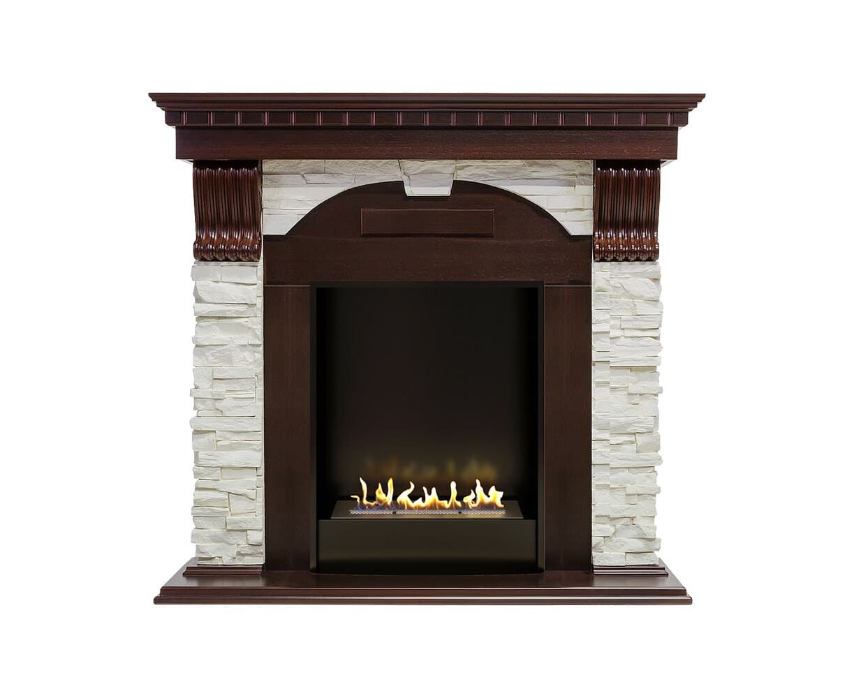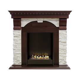 Портал Dublin выполнен в классическом стиле с античными элементами. Боковые колонны из светлого камня, стилизованного под натуральную сланцевую породу, дополнены резными узорами контрастного цвета. Столешница и постамент выполнены из дерева. Такое сочетание материалов подчеркивает изысканность портала и делает его выгодным приобретением для практических любых интерьеров.