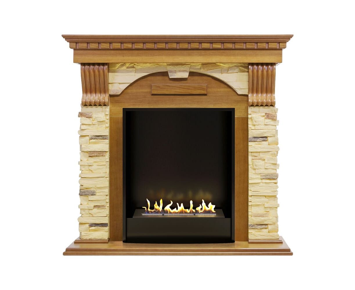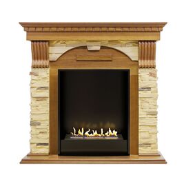 Портал Dublin выполнен в классическом стиле с античными элементами. Боковые колонны из светлого камня, стилизованного под натуральную сланцевую породу, дополнены резными узорами контрастного цвета. Столешница и постамент выполнены из дерева. Такое сочетание материалов подчеркивает изысканность портала и делает его выгодным приобретением для практических любых интерьеров.