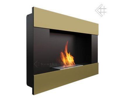 Биокамин настенного типа от польской компании KRATKI. Выполнен из окрашенной термоустойчивой стали и декорирован сатинированными полосами металла разного цвета - медного золотистого или черного.