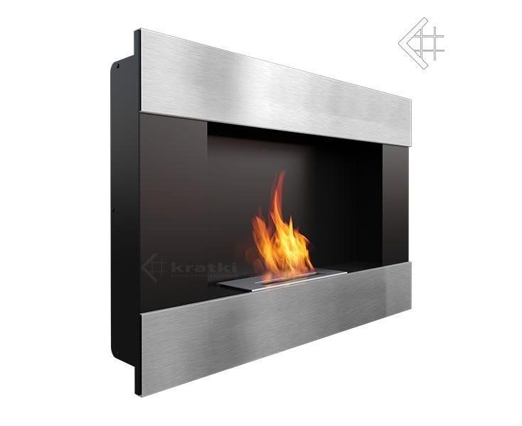 Биокамин настенного типа от польской компании KRATKI. Выполнен из окрашенной термоустойчивой стали и декорирован сатинированными полосами металла разного цвета - медного золотистого или черного.