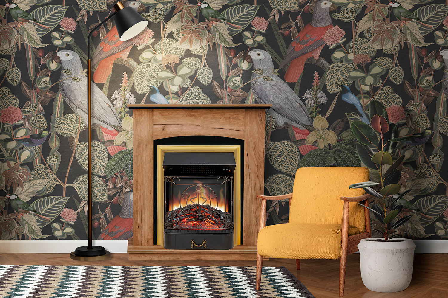 Иллюзия огня в топке создается с помощью специальной подсветки, действие которой усиливает технология имитации звуков горящих поленьев. Этой же цели служат мерцающие светодиодные дрова, которые используются в качестве декоративного топлива.
