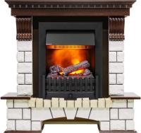 Пламя электрического очага с эффектом реального пламени создает неповторимую атмосферу тепла и уюта. В очаге предусмотрена возможность включения пламени без режима обогрева, что позволит наслаждаться работающим камином даже летом. Мощность обогрева: 2 кВт. Уникальность пламени Opti-Myst заключается в его стопроцентной реалистичности: для создания эффекта пламени используется встроенный ультразвуковой парогенератор. Вода заливается в специальный выдвигаемый резервуар, удобно расположенный под муляжом дров, из которого, при помощи парогенератора, выходит в виде пара. Клубы пара подсвечиваются галогеновыми лампами со специальным светофильтром. Подсветка работает таким образом, что снизу пар, поступающий из парогенератора, подсвечивается ярче и воспринимается как огонь, а верхняя часть пара в этом случае становится похожей на дым.