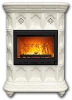 Камин Истра спроектирован в стиле современной классики. Его отличают стройные пропорции, симметричное расположение топки и рельеф изразцов которые прекрасно смотрятся в однотонном исполнении. Изюминкой камина стал цветочный рельеф, украшающий