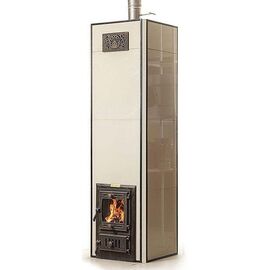 Печь предназначена для относительно быстрого прогрева помещения за счет нагрева своей поверхности и конвективного нагрева воздуха. Она эффективно сочетает преимущества теплоёмких и конвективных печей, сохраняя тепло в течении 6-8 часов. Эти качества необходимы, когда печное отопление используется в осенне-весенний период для дач, обогрева комнат отдыха в банях, домиках рыбака, охотника, турбаз. Печь состоит из шамотного сердечника в металлическом герметичном кожухе и внешней керамической облицовки с воздушным зазором между ними, что обеспечивает эффективный конвекционный режим и исключает появление трещин, связанных с перетопом. Подовое горение обеспечивается притоком первичного воздуха через чугунную дверку со стеклом и дополнительным каналом вторичного воздуха к задней стенке топки. Благодаря регулировке подачи воздуха, стекло дверки защищено от копоти.