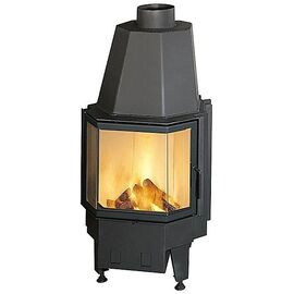 Закрытая топка с призматическим стеклом способна быстро и эффективно обогреть помещение. Внутренние стенки очага из шамота. Дверца открывается в сторону.