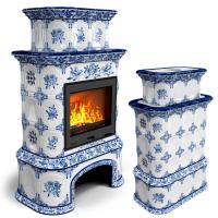 Описание печь-камин Прованс с дровником Центральный Двухъярусный Дельфт