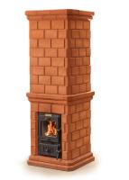 Внутреннее устройство отопительного прибора представляет собой шамотный сердечник установленный в металлический кожух, а внешнее устройство – кирпичная облицовка с воздушным зазором. Благодаря конструктиву изделия обеспечивается подовое горение за счет притока первичного воздуха через чугунную дверцу топки.