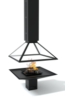 Модель центрального дровяного камина. Камин очень надежен и прост в эксплуатации. Особенностью модели является динамичный прозрачный колпак, нависающий над пламенем камина. Это колпак может подниматься и опускаться по Вашему желанию. В движение он приводится нажатием одной клавиши на пульте управления. Вы сами регулируете высоту поднятия или опускания колпака. Соответственно эта модель камина может использоваться как с открытым, так и с закрытым очагом по Вашему желанию. А широкое жаростойкое стекло Robax и тонкие стальные оси колпака позволяют наслаждаться игрой пламени со всех сторон. Производитель оставляет за собой право без предварительного уведомления покупателя вносить изменения в конструкцию, комплектацию или технологию изготовления изделия с целью улучшения его свойств.