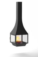 Модель современного камина VETRO это гармоничное сочетание стекла и металла. Наличие стекол с четырех сторон топочной камеры придают легкость этой модели. В модели подвесного камина VETRO обзор огня доступен с любой стороны, в этом удобство и универсальность расположения камина в пространстве. Закладка дров возможна с двух сторон топочной камеры. Камин подвешивается с потолка, такую модель хай-тек камина лучше всего располагать в центре помещения. Панорамный камин из стекла и металла VETRO может быть окрашен в любой цвет по вашему желанию или в соответствии с Вашим дизайн проектом. Камин прост в обслуживании и не доставит проблем, пожаробезопасен.