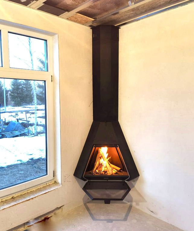 Компактный пристенный подвесной камин в современном стиле. Крепится камин к стене (крепеж включен в комплект). Закладка дров осуществляется через дверку. Дверца камина выполнена из огнеупорного стекла Robax. Она удобна в эксплуатации, имеет откидной тип открывания. Лофт камин дает прекрасный и безопасный обзор огня почти из любой точки помещения. Верхнюю часть камина можно нарастить, заказав нужную длину кратно 1 метру, в случае если высоты базового комплекта недостаточно. Современный камин может быть окрашен в любой цвет по вашему желанию или в соответствии с Вашим дизайн проектом. Камин прост в обслуживании и не доставит проблем, пожаробезопасен.