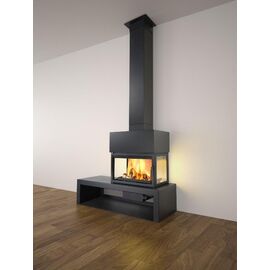 Камин в стиле High-Tech LL-15D произведен испанской компанией. Фронтальный стальной камин с трехсторонним остеклением, банкетка слева.