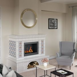 камин в эксклюзивной изразцовой облицовке ручной работы.