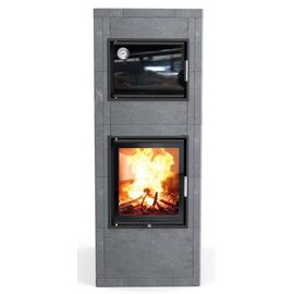 малоэтажных коттеджей и для приготовления еды. Модель печи максимально приближена к Классической деревенской дровяной печи с духовкой. Изделие заводского исполнения. Модель отличается высокой производительностью: благодаря ей можно очень быстро прогревать помещение. Печь имеет особую, тщательно продуманную конструкцию, которая позволяет ускорять распространение теплого воздуха в комнате. Теплоёмкий материал облицовки печи создаёт дополнительный обогрев благодаря лучистому теплу от разогретого камня внешней облицовки.