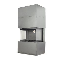 У данной модели есть возможность наращивать кожух на нужную высоту. Топочная камера камина EcoKamin Родос 800 изготовлена по модульной системе. Корпус изготовлен из картеновой стали и сварен сплошным сварным швом на роботизированной линии сварки. Сталь позволяет задать топке любые размеры и внешний вид, но она сильно расширяется при нагреве. Поэтому в качестве теплоизолирующего материала применяется шамот. Этот материал выдерживает температуры до 1300С и поэтому прекрасно справляется с термическими нагрузками в топочной камере.