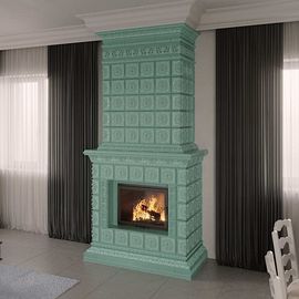 Камин Ceramica - это комплект керамических изделий (изразцы, изразцовая плитка), предназначенный для отделки короба дровяного камина (камин строится с нуля или уже построенный камин адаптируется под облицовку).