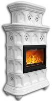 Камин Истра спроектирован в стиле современной классики. Его отличают стройные пропорции, симметричное расположение топки и рельеф изразцов которые прекрасно смотрятся в однотонном исполнении. Изюминкой камина стал цветочный рельеф, украшающий карнизы.