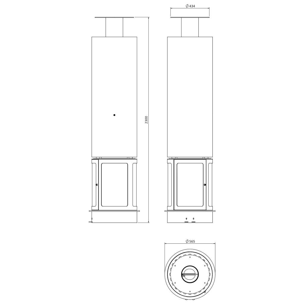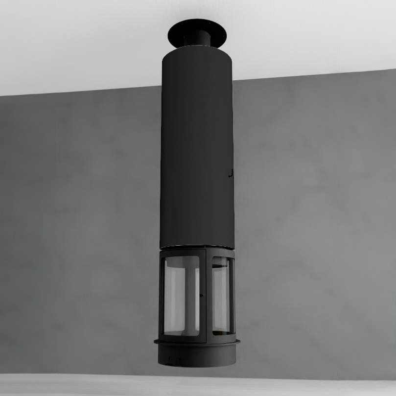Центральный подвесной закрытый круглый камин. Дымоход Ø180 мм.