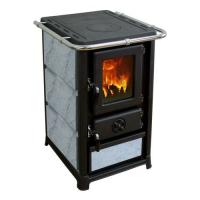 Печь укомплектована варочной поверхностью с одной конфоркой для приготовления пищи. Топочная камера состоит из чугунных плит. Дверца топки укомплектована термостойкой стеклокерамикой.
