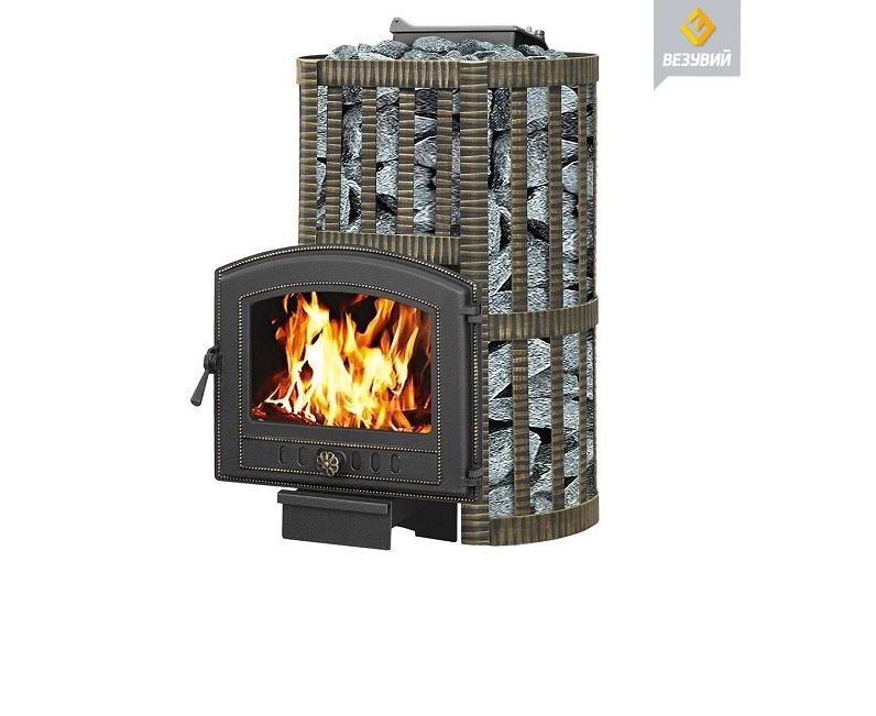 Банная чугунная печь Ураган Ковка 16 224 укомплектована чугунной герметичной дверцей Везувий 224 с жаропрочным стеклом «SCHOTT ROBAX». Закрытая каменка изготовлена из стали и вмещает в себя не менее 60кг камней. Конвекционно-вентилируемый кожух "Ковка" изготовлен из металлической текстурированной полосы покрашенной термостойкой краской и покрытая патиной «Бронза».