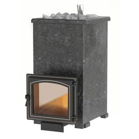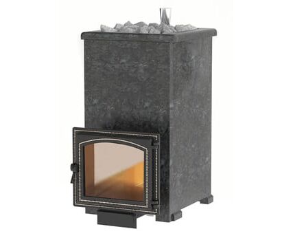 Данную модель печи отличает от аналогов то, что закрытая каменка расположена внутри топки. Это позволяет максимально быстро и хорошо прогревать камни, которые расположены внутри каменки. На камни через специальную трубку с отверстиями поддается вода, которая моментально испаряется, превращаясь в мелкодисперсный пар.