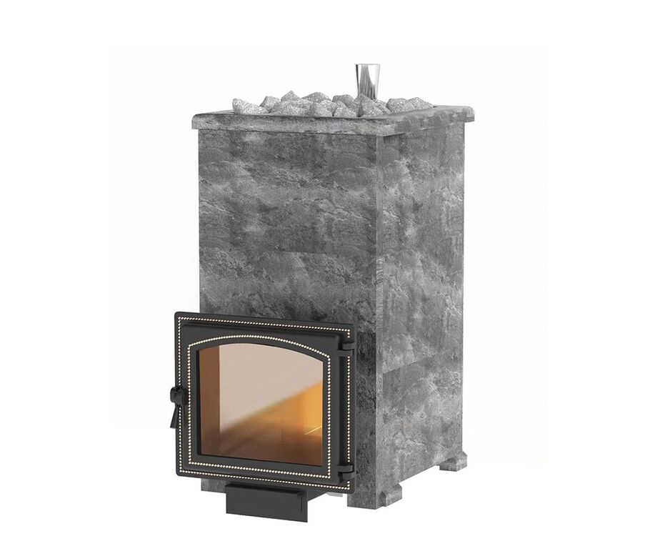 Данную модель печи отличает от аналогов то, что закрытая каменка расположена внутри топки. Это позволяет максимально быстро и хорошо прогревать камни, которые расположены внутри каменки. На камни через специальную трубку с отверстиями поддается вода, которая моментально испаряется, превращаясь в мелкодисперсный пар.