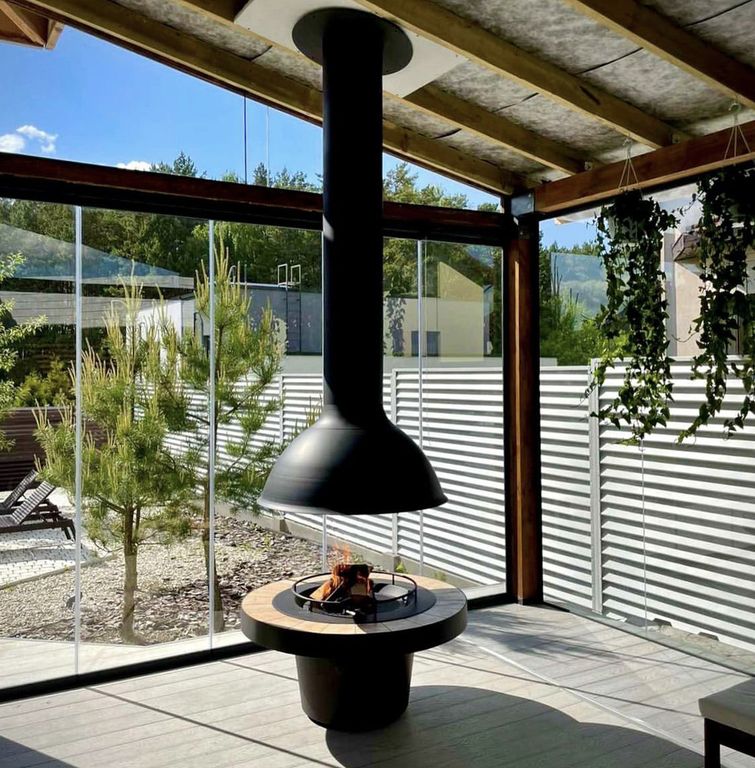 Интересный и необычный камин SPHERE. Отличительная черта этой модели - отсутствие прямых резких углов, что наделяет её своеобразной мягкостью, какая только возможна для камина из металла. Открытая конструкция камина полусферы открывает великолепный обзор играющего огня. Трапециевидное основание камина окантовано столешницей, которая в стандартной комплектации отделывается шамотной плиткой молочного цвета. Он прост в обслуживании и не доставит проблем, пожаробезопасен.